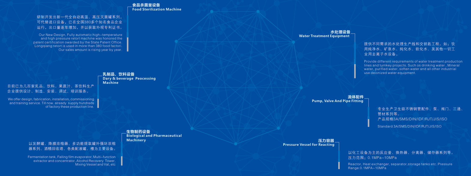 Our products are widely used in the food and pharmaceutical industries all over the world and favorably accepted by the users. We will continue to undertake project design, equipment manufacturing, installation, adjustment and technical training etc.